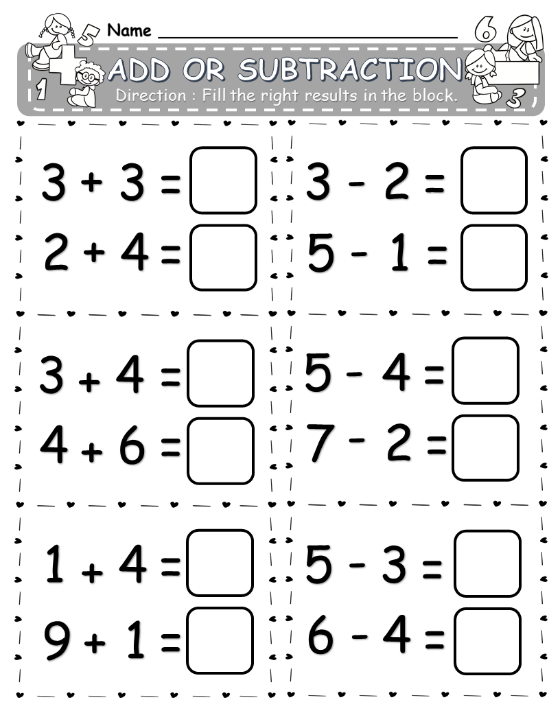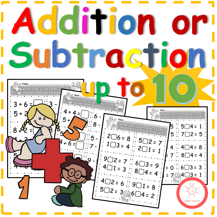 You will get 20 pages of math worksheet for kids, Addition or Subtraction up to 10