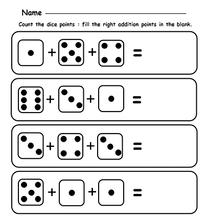 You will get the worksheet : Dice point count & addition sums to 10
